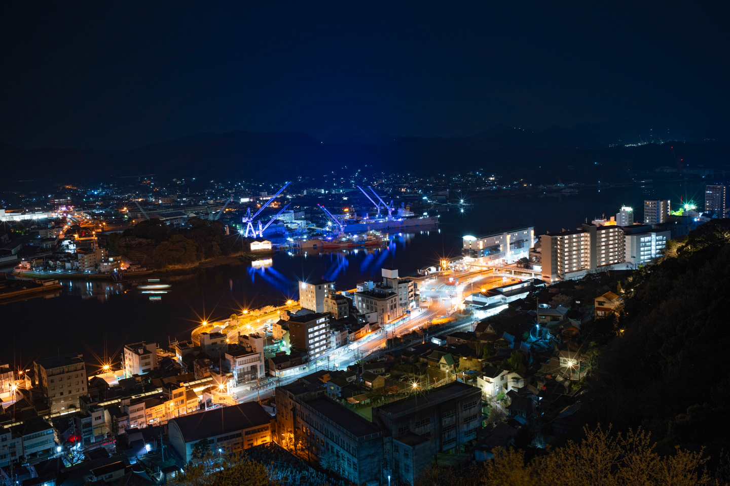 宿泊したホテルで夜景撮影にもチャレンジ。三脚は持って行きませんでしたが、屋外BARの手すりに置いて長秒露光での撮影ができました。ピントを合わせる際は、遠方の大きな看板の文字などを拡大して合わせるとピント迷子になりにくいです。