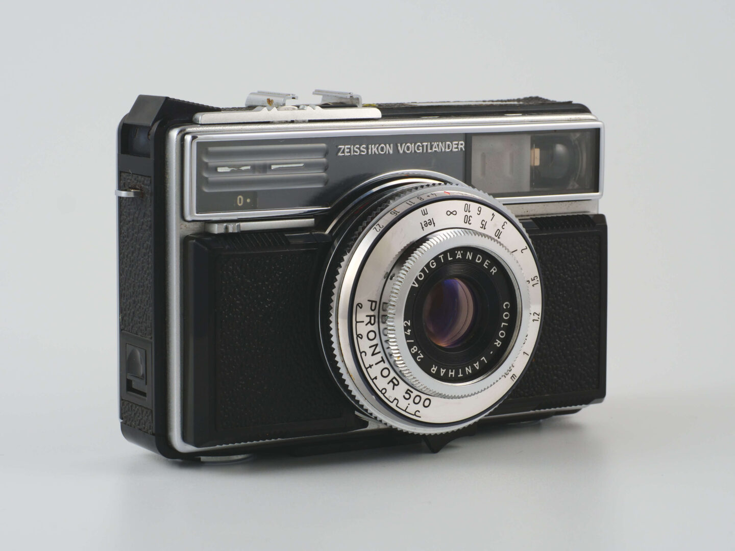ビテッサ 500AE electronicの姉妹機には、機械式シャッターを搭載したモデルもラインナップされていました。ビテッサ 500Lは1/15~1/500秒のプロンター500LKを搭載したエントリーモデルで、セレン光電池による定点合わせの露出計を内蔵した軽快なマニュアル機。ビテッサ 1000SRは、1/15~1/1000秒のプロンター1000LKを搭載し、定点合わせの露出計に加えて二重像合致式の距離計を内蔵し、ファインダー内でピント合わせが可能な本格派モデル。レンズは前出の2機種がトリプレットタイプのフォクトレンダー・カラーランターであるのに対して4枚構成のツァイス・テッサーという通好みのモデルです。