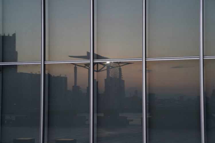 85mmのレンズで街中スナップするのは少々焦点距離が長いのですが、気になったものを思い切って切り取る撮影ができます。下の写真は手前にあるチェーンの柵の前ボケ反射を狙って撮影し、写真にアクセント加えました。