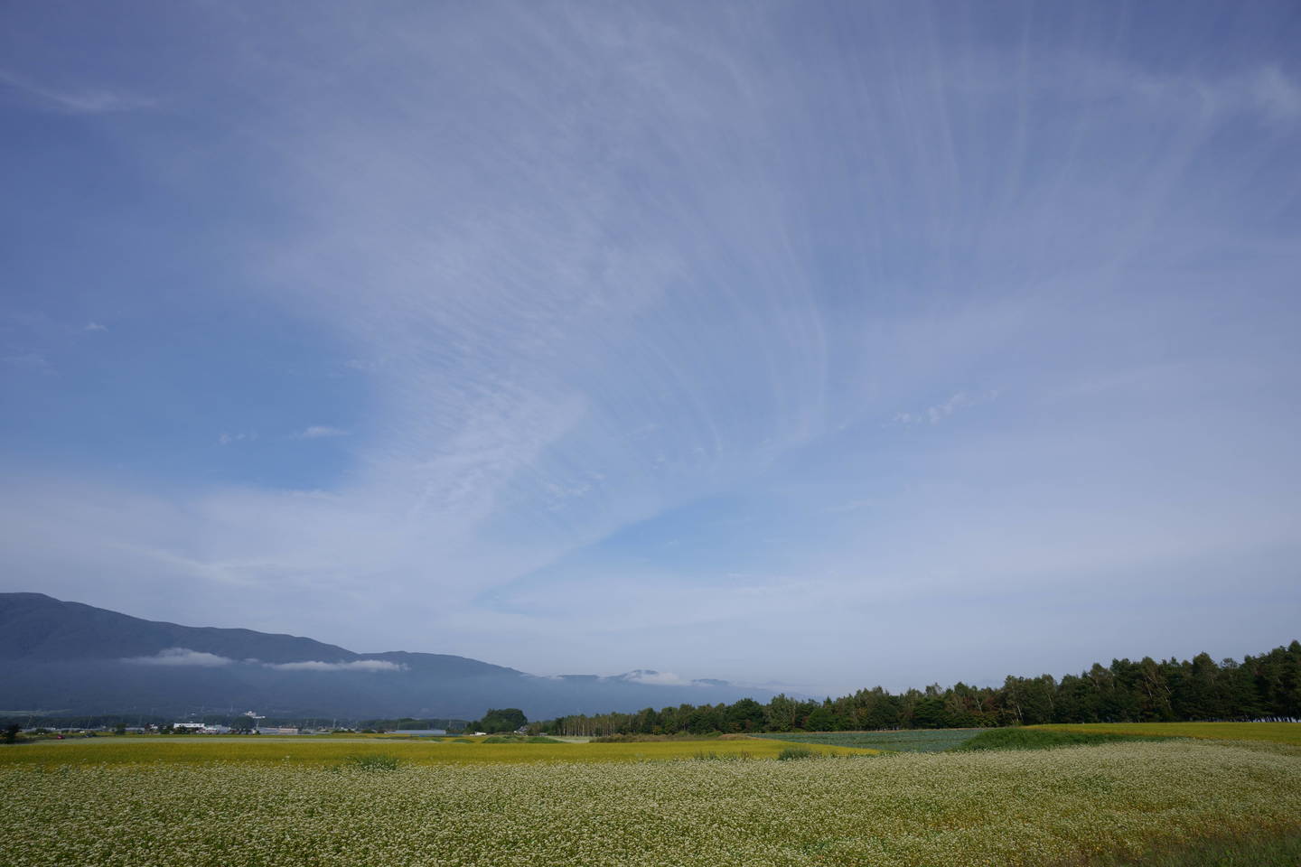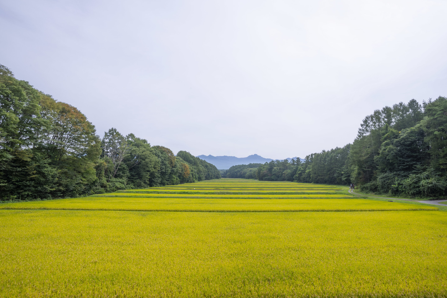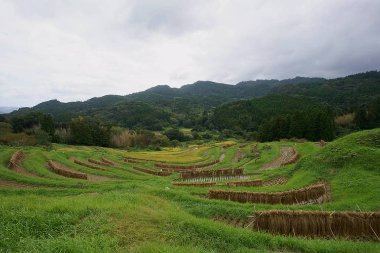 稲刈りが始まった棚田ですが、18mmという超広角レンズのおかげでしっかりと棚田全体を押さえる事ができ、奥行き感も写し込む事ができています。薄曇りの空でしたので空の表情が乏しいですが、緑のグラデーションの表現力は流石がツァイスレンズだと感じます。