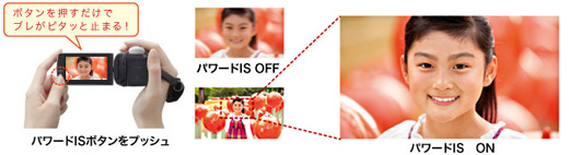 望遠撮影時には、わずかな手ブレでも映像が大きく揺れてしまいます。パワードISはボタンを押している間、手ブレを強力に補正します。メニュー設定によ り、ボタンを押すごとにパワードISのON/OFFを切り替えることも可能。公園や運動会などで、遠くのわが子に思い切りズームしても鮮明にとらえること ができます。