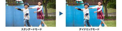 ダイナミックモードは、ワイド(広角)端でスタンダードモード比約14倍※1の範囲を補正できます。電子式手ブレ補正※2を併用し、望遠側の手ブレも補正します。動いているわが子と並んで歩き撮りしたり、階段を上り下りしながら撮影しても、安定した見やすい映像を撮影できます。
