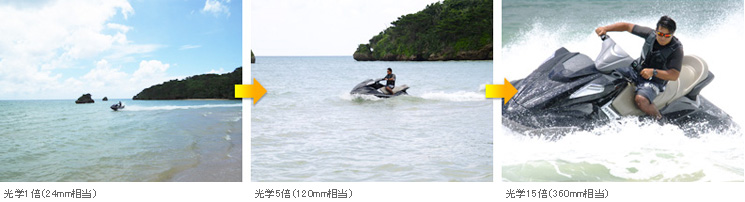 広がりのある風景などをダイナミックに撮影できる、フジノン・広角24mmワイドレンズを搭載。また、光学15倍ズームで、遠く離れた被写体を思い切り引き寄せて美しく撮影できます。