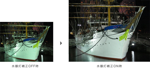 画像を多くのエリアに分割し、各領域の色情報から光源の種類を判別して色を再現。フラッシュ撮影時や水銀灯下の撮影に有効です。