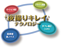 夜景の撮影や薄暗い室内での撮影でも、ノイズを軽減したキレイな写真が写せます。高感度時に発生しやすいノイズをより効果的に低減する高感度対応の画像処 理エンジン「EXPEED C2」と優れたノイズ低減技術を採用。暗い場所でも高速シャッタースピードが使える高いISO感度で、ブレもノイズもより少ないキレイな写真を残せます。