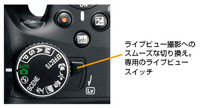 バリアングル液晶モニターのメリットを最大限に活用できるライブビュー撮影。大きくて見やすい3型VGA(約92万ドット)、広視野角170°、視野率 100%の液晶モニターで、被写体を確認しながら撮影できます。専用のライブビュースイッチで、ファインダー撮影からライブビュー撮影への切り換えは簡単 スムーズ。コントラストAFで、画面内の好きなポイントでピント合わせができます。