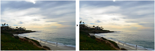 傾き補正:撮影画像の水平線や地平線などが傾いてしまった場合などに、画像の傾きを±5°の範囲で補正できます。