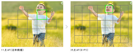 フォーカス選択エリアが11点から35点に増加したので、きめ細かなピンポイントのAFがより広い範囲で行えるようになりました。グループエリア選択では3×3のエリアを指定してのAFとなるので、動いているものを確実に捕捉したいときなどに便利です。