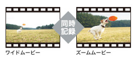 全体のシーンの“ワイド”と、被写体に寄った“ズーム”の2タイプを同時に撮影。*2ズーム側は被写体に合わせ、フレーム枠を自動で追尾させることができます。さらに、2画面同時再生できるので全体の雰囲気と表情のアップを一緒に楽しむことができます。