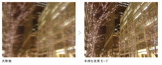 三脚を使わずに、手持ちでキレイに夜景を撮れます。1回のシャッターで4枚を高速連写。画像を高精度に重ね合わせて1枚の画像にするので、暗い部分もノイズが少なく、鮮やかな夜景写真を残すことが可能です。