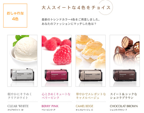 お洒落に選べる4つのカラー、軽くてちっちゃな高機能ムービー。
