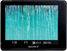 露出やホワイトバランス、「クリエイティブスタイル」や「ピクチャーエフェクト」といった、多くの設定効果をファインダーにリアルタイム表示。これまで光 学ファインダーではできなかった、撮影結果の事前確認がファインダーから眼を離さずに行え、フレーミングを維持したまま設定変更、確認が可能。設定を変え るたびに背面液晶で効果を確認する必要がなく、撮影者のフレーミングやシャッターチャンスへの集中力を高めます。また、撮影結果もファインダーに表示 (*)するため、背面液晶では確認が難しい明るい環境下でも、ファインダー内でしっかり確認できます。