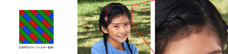 独自の画素配列が受け止めた情報をもとに、全画素をフル活用。EXRプロセッサーの高度な信号処理を行うことで、最も解像度の高い画像を作ります。細かな木々の葉や人物の髪の毛などをくっきり鮮明に撮影できます。