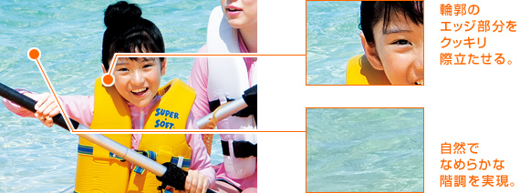 撮影した画像データを自動で分析し、部分ごとに最適な画像処理を行うことで、エッジ部を強調しながら、自然でなめらかな階調を両立しました。超解像40倍ズーム時も細部まで精細感あふれるディテール描写を実現します。