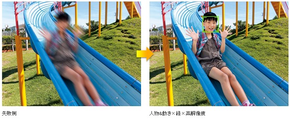 動いている人物を認識してピントや明るさを瞬時に最適化。しかも最大1600万画素の高解像度で、人物の髪の毛や、背景の緑までくっきり描写します。 顔追尾AF プレミアムEXR AUTOや動画撮影時、カメラが検出した顔が動いても追尾し続け、顔にピントを合わせます。一度検出すれば、顔が横向きになっても追尾するので、絶好のシャッターチャンスを逃さず撮影できます。動き回る子供の表情を鮮明に残せます。