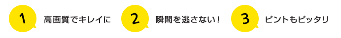 たとえば、動きの読めない動物や動きの激しいスポーツ。そんな難しい撮影をフォローするのが、この 高速連写※ です。Nikon 1なら動いている被写体をAFが追従しながら1秒間に約10コマを高速連写。さらに、はじめの1コマ目にフォーカスを固定して、フル解像度のまま最高1秒間に約60コマのスピードで撮影することも可能。撮りたかったあの瞬間を、もう逃しません。