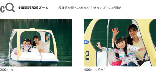 新たに開発された「オートポートレートフレーミング」機能を搭載。撮影時に画像を「顔検出」で認識し、バランスのとれた人物画(ポートレート)の構図になるように、カメラが自動で判断して切り出します。なにげなく普通に撮ってしまう写真も、より印象的な写真に仕上げ、誰もがプロのような構図でポートレートを手軽に撮影できます。また、切り出された画像は「全画素超解像技術」によりオリジナルと同じ解像感を保ちます。オリジナル画像も一緒に保存されるので、自分が取った構図とカメラが判断した構図を比べられ、ポートレート撮影における被写体の切り取りかたの参考にできます。
