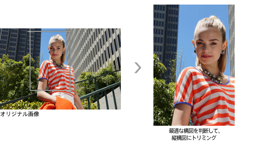 画像を「顔検出」で認識し、バランスのとれた人物画(ポートレート)の構図になるように、カメラが自動で判断して切り出す「オートポートレートフレーミン グ」機能を搭載。普通に撮ってしまいがちな写真を、より印象的な写真に仕上げ、プロのような構図でポートレートを手軽に撮影できます。また、切り出された 画像は「全画素超解像技術」によりオリジナルと同じ解像感を保ちます。オリジナル画像も一緒に保存されるので、自分が取った構図とカメラが判断した構図を 比べられ、ポートレート撮影における被写体の切り取りかたの参考にできます。