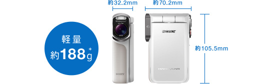 “ハンディカム”の性能を、軽さ約188g(*)という小型軽量ボディに凝縮。かさばりにくく、持ち運びに便利なので、旅行にもぴったりです。しかも、縦型デザインを採用。右手でも左手でも持ちやすく、自然で安定した姿勢でラクに撮影できます。