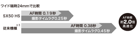 ※1 PowerShot SX40 HS(2011年9月発売)※【AFスピードの測定条件】すべて同一条件にて計測 露光量:LV13、撮影モード:Pモード/Single AF(中央1点)。