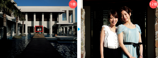 人物がいる場合 撮影画像内の人の顔を最大12人まで自動的に認識。画面内で人が移動したり、構図を変えても、顔にピントを合わせた状態をキープします。