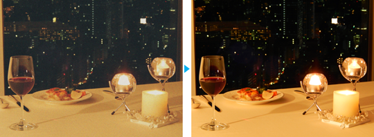光の少ない暗い場所で起こりがちなノイズを抑え、クリアーな写真が撮影できます。