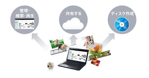 PCソフトウェア“PlayMemories Home”(*)を使えば、写真や動画の整理・検索が驚くほどかんたん。さらに、他の機器や“PlayMemories”サービスと連携し、写真や動画の楽しみを広げます。