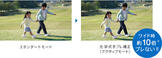 * ワイド側での手ブレ補正角度(スタンダードモードとの比較)