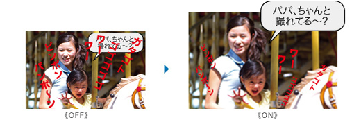 撮影中に顔認識と連動して、周りのノイズを低減し、くっきりとした音声を記録出来ます。 また、この機能をOFFにすることも可能。演奏会など、音源に忠実に録音したい時などに最適です。
