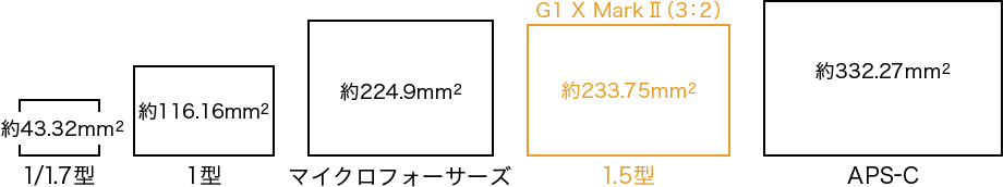 ※G1 X Mark Ⅱのセンサーサイズの図は、有効画素数約1280万画素(3:2時)の大きさです。