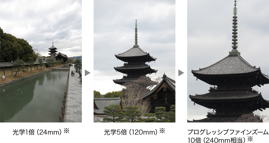 歩き撮りなどに効果的な「ダイナミックIS」を強化。光学ブレ補正に加え、新たに平行移動時の電子ブレ補正や、水平・縦回転の歪み補正も可能に。2つの補正の連携で、より高度に手ブレを抑制します。