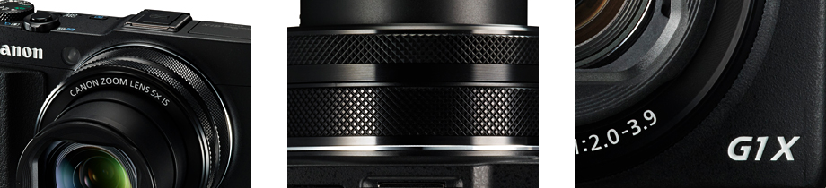 G系の品位を感じる、重厚な「デザイン」 G1 Xシリーズの造形イメージを継承した、シンプルながらも剛性感あるフォルム。ボディーの天面の右肩上がりに流れる造形は、G1 Xを彷彿とさせます。またレンズ周りの質感を高めるデュアルコントロールリングは、シルバーリングとテクスチャーの異なるデザインを採用しています。