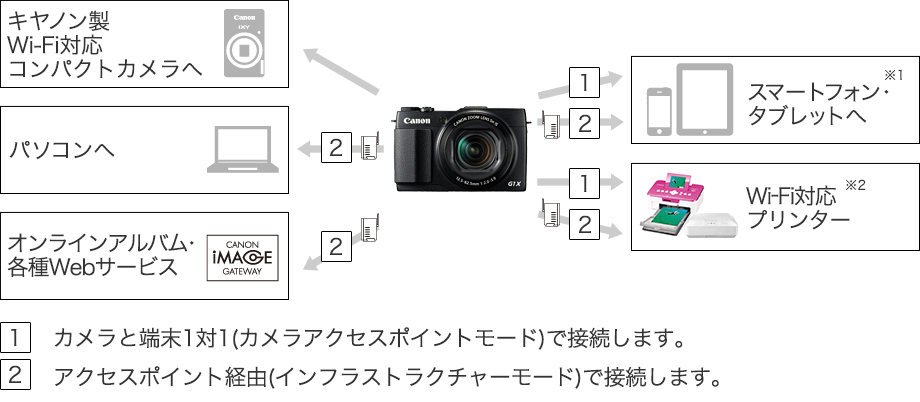 ※2プリンターは、PictBridge(USB and Wireless LAN)対応機種に限ります。