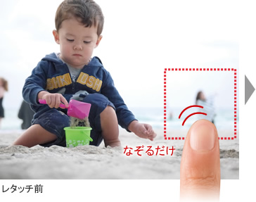 「クリアレタッチ」なら、画像内の不要な部分をなぞるだけで消すことが可能。 ピンチアウトで拡大表示することで、小さくて細かい部分も消去できるので、撮影意図に近い作品づくりが行えます。 また、元のファイルを残したまま、新規ファイルとして保存することができます。