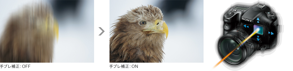 すべてのαレンズ(Aマウントレンズ)で手ブレを抑えるボディ内手ブレ補正機能を搭載。遠くの被写体を望遠レンズで手持ち撮影したいような場合でも、手ブレを気にせずに撮影に集中できます。