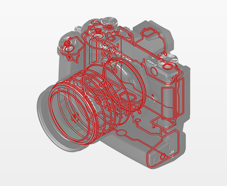 高級感のあるブラックと、輝度が高く華やかなシルバーのボディーカラーにあわせて、上質感を追求した金属削りだしのダイヤルや、デルタ形状を強調し精悍さが増したファインダー部、重心を下げた軍艦部など、細部まで徹底的にこだわることで、カメラとしての存在感を極限まで高めました。 雨中での撮影も可能 防塵・防滴・-10℃耐低温性能。
