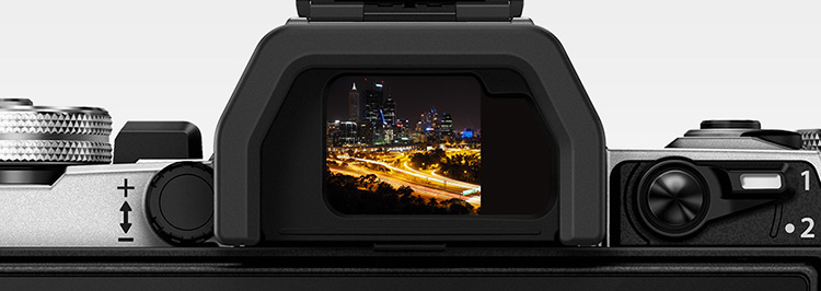 フルサイズ一眼レフに匹敵するファインダー倍率1.48倍(35mm判換算 0.74倍)の超大画面、236万ドットの超高精細電子ビューファインダーを内蔵。明るい日中や夜間でも、自然な見えを実現する「キャッツアイコントロール」や、感じるままに色を操る「カラークリエーター」などEVFだからこそ実現できる機能を多数搭載しています。