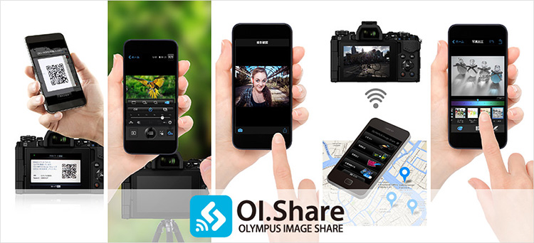 スマートフォンアプリ「OLYMPUS Image Share」と簡単に接続できるWi- Fiを内蔵しています。初期設定はカメラのモニターに表示されたQRコードを読み込むだけ。カメラ内の写真転送やカメラコントロールの他、スマートフォンで取得した位置情報を画像に付加したり、撮影した後の画像にアートフィルターをかけたりすることができます。またスマートフォンでライブビュー画面を見ながらの動画撮影にも対応しました。多彩なシーンでワイヤレス撮影が活躍します。