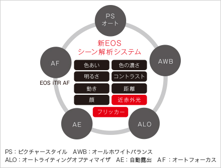 さらに高精度化したキヤノン独自のEOSシーン解析システムを、EOS 5D Mark IVに採用。近赤外光を含む波長領域の検知、フリッカー検知を可能にする測光センサーを搭載することで、AF、AE、オートホワイトバランス、ピクチャースタイルオート、オートライティングオプティマイザなどの制御精度が向上しました。また、顔検知と色追尾機能により、自動選択AF時のAF精度も向上。動く被写体にピントを合わせる精度もアップしています。