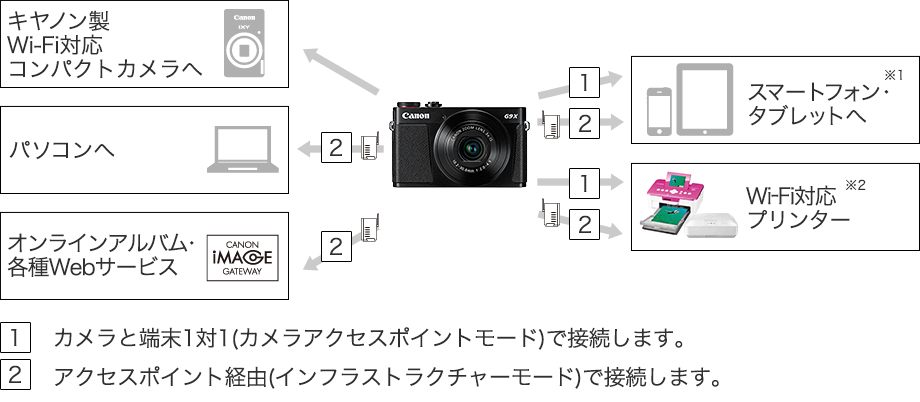 ※2プリンターは、PictBridge(USB and Wireless LAN)対応機種に限ります。