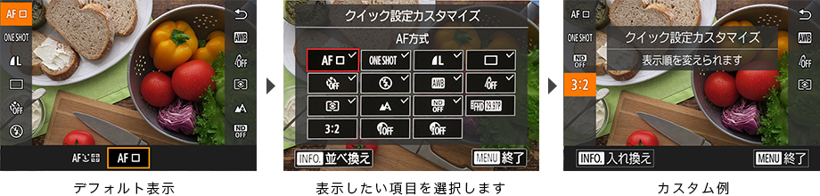 あらゆる撮影者に、そしてすべてのシーンで使いやすい操作性をめざして。G9 Xは、液晶画面に表示されるボタンがカスタマイズ可能に。自らの用途や撮影スタイルに合わせて、適切な画面表示を設定することができます。