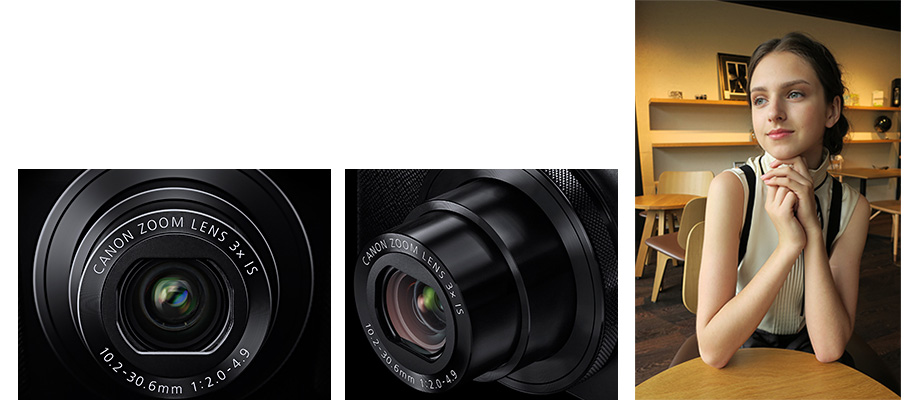 画質を左右するのは、光の質です。良質な光をより多く導くために、G9 Xは広角端F2.0の大口径レンズを搭載。夜景や室内など、光量が少ないシーンでも手持ちで積極的な撮影が可能です。また、大型センサーとの連携で、背景をぼかした表現も楽しめます。両面非球面レンズなどを採用することで、ボディーの小型化と高解像力の両立という課題を高度にクリアしました。