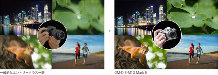 ピンボケのように見える失敗写真の多くは、実は手ぶれが原因でした。E-M10 Mark IIは5軸手ぶれ補正を搭載しているので、あらゆるシーンで失敗の少ない美しい一眼品質の写真を撮れます。