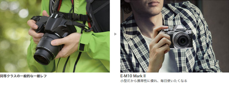 持っていることが苦にならない小さなボディー、そして、持っていきたくなるスタイリッシュなデザイン。E-M10 Mark IIは、毎日使える一眼カメラです。