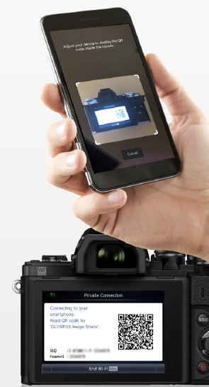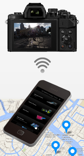 スマホに簡単に接続できるWi-Fiを内蔵。カメラ内の写真転送がすばやく行えます。また、カメラコントロールの他、スマホで取得した位置情報を画像に付加したり、撮影した後の画像にアートフィルターをかけたりできます。