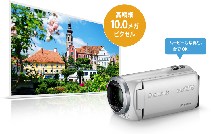 写真撮影モードでは、10.0メガピクセルの高精細写真記録が可能。ちょっとしたお出かけや旅行先などでも、この1台でムービーも写真も鮮やかに残すことができます。