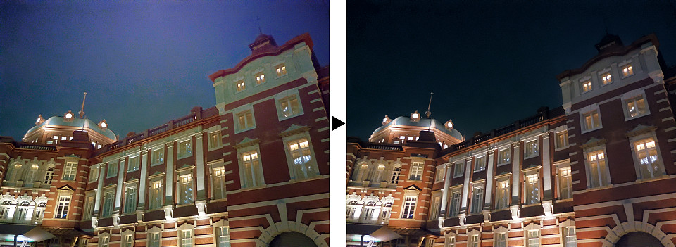 光の少ない暗い場所で起こりがちなノイズを抑え、クリアーな写真を撮影できます。