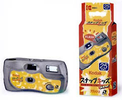 最近、携帯電話などを首にブラ下げたファッションが流行していますが、レンズ付フィルムにもスリムで斬新なデザインのおシャレな機種が登場してきました。コダックの「スナップキッズ スーパー」フラッシュ(25枚撮り)がそれで、10月21日から新発売されます。この新製品は若い女性にターゲットにして、“スリムで”“かわいくて”“おしゃれな”レンズ付フィルムが欲しいになっています。