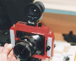 一方、銀塩カメラでは一眼レフではキヤノンEOS-1V、ニコンF80 、F90 シリーズに多くの人だかりができていました。また 645サイズを中心とした中判カメラの人気が高く、ペンタックス、京セラ、富士フイルム、マミヤ・オーピーのブースではカメラにたどり着くのにかなりの時間を要しました。コンパクトカメラではコニカHEXAR RFに熱い目が注がれていたのが印象的でした。