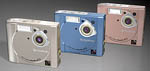 このデジタルカメラはポケットに入り、軽くて薄く、いつでもどこでも気軽に写真が撮れて、移動しながらでも高音質の音楽が聴け、しかも画像と音声を同時に記録できる音声付き動画撮影機能が搭載されています。さらにハニカム信号処理で記録画素数最大 432万画素の超高画質を実現しているのですから、驚かされます。また、カメラの色はシルバー、コズミックブルー、メローピンクの3色があって、自分の好みで選べます。